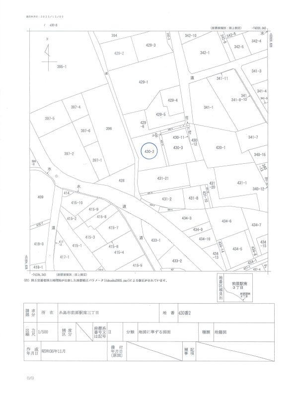 | 特記事項 | 1.都市計画道路無 2.埋蔵文化財包蔵地(笹山遺跡群) 上水道・・東側本管50mm引込管無 下水道・・西側里道本管200mm取付管150mm | ||